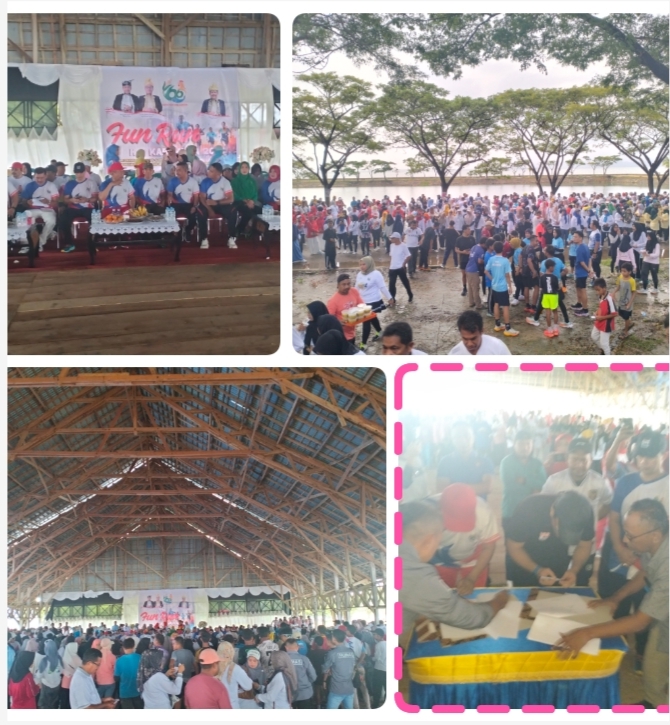 Raha-munanews.com-Ribuan masyarakat Kabupaten Muna meriahkan kegiatan Fun Run dalam rangka Hari Ulang Tahun Kabupaten Muna Ke-66 tahun 2025, yang berpusat dipelataran Arena Dayung, Sabtu 5/07/2025.